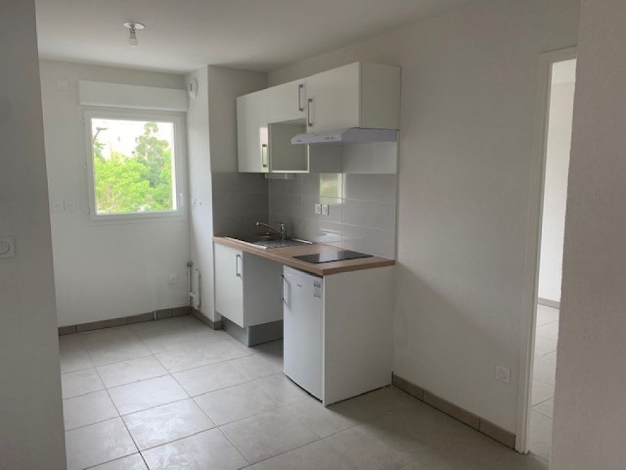 Venez découvrir cet appartement T2 au 2éme étage de la résidence GONIN Ce logement récent se compose d'un espace séjour avec cuisine équipée (plaque de cuisson, hotte, frigo, et rangement). Une salle d’eau avec WC ainsi qu'une chambre de 12 m² et pour compléter cet appartement un balcon .