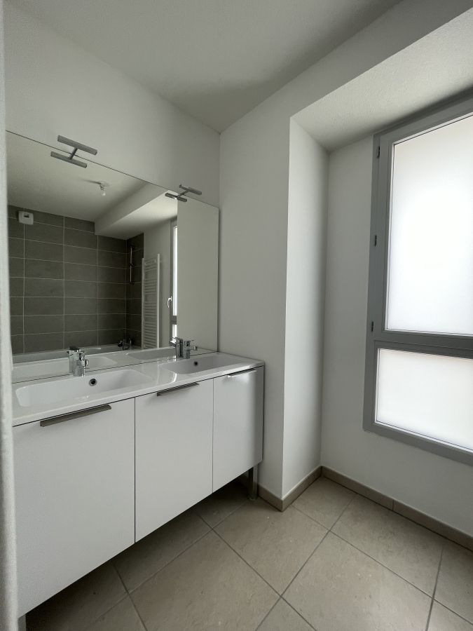 Il se compose d'une entrée avec placard, un espace séjour avec cuisine ouverte équipée, un espace nuit avec 2 chambres avec placard, une salle de bain avec double vasques et WC séparé.