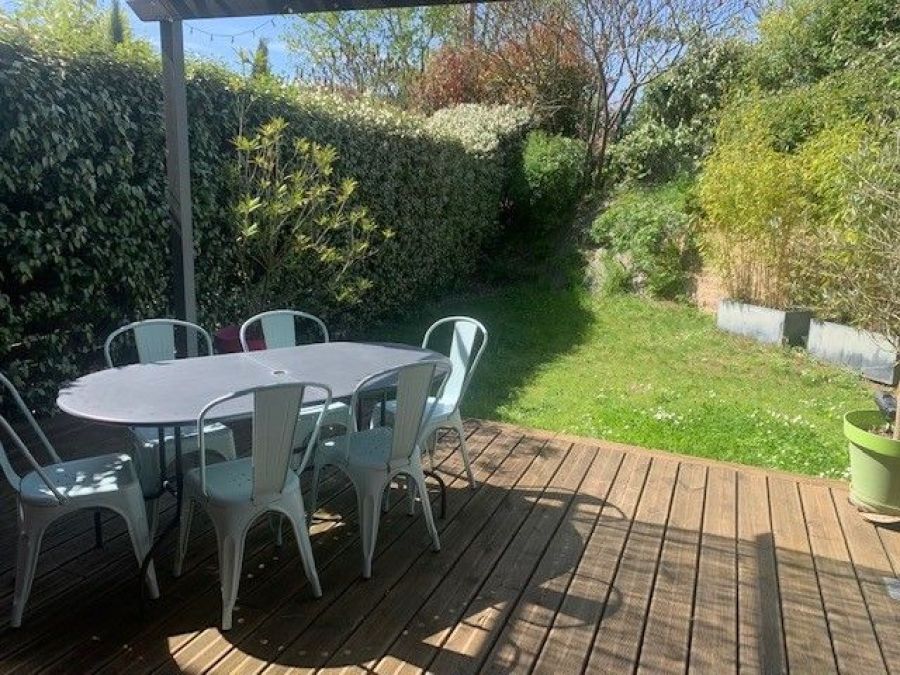 Le séjour donne directement sur la grande terrasse de 25m² et sur le jardin, sans vis-à-vis, de 60m² et clôturée.