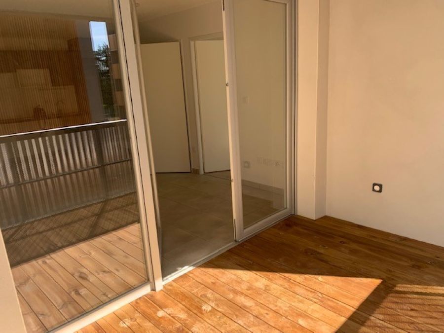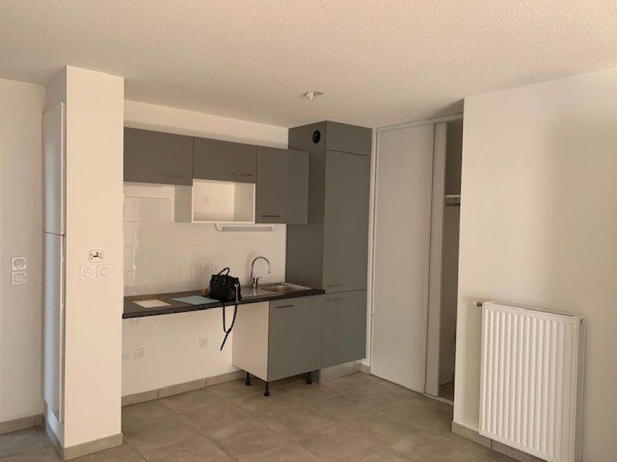 Ce logement récent se compose d'un espace séjour avec cuisine équipée (plaque de cuisson, hotte, frigo, et rangement). Une salle d’eau avec WC ainsi qu'une chambre de 12 m² et pour compléter cet appartement un balcon de 7 m².