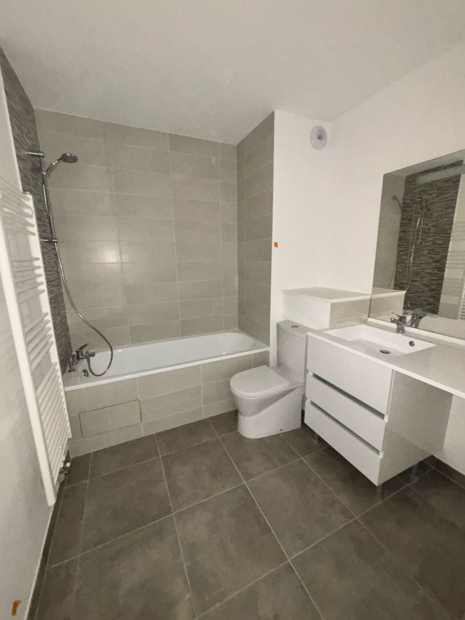 Le logement comprend une entrée avec rangement, une cuisine équipée aux couleurs modernes ouverte sur le séjour. La pièce de vie spacieuse et lumineuse, donne sur un agréable balcon avec un revêtement en bois de 15 m². Côté nuit nous trouverons, 1 chambre avec placard . Une salle de bain agrémentée de meuble sous vasque, miroir lumineux, baignoire, sèche serviette.