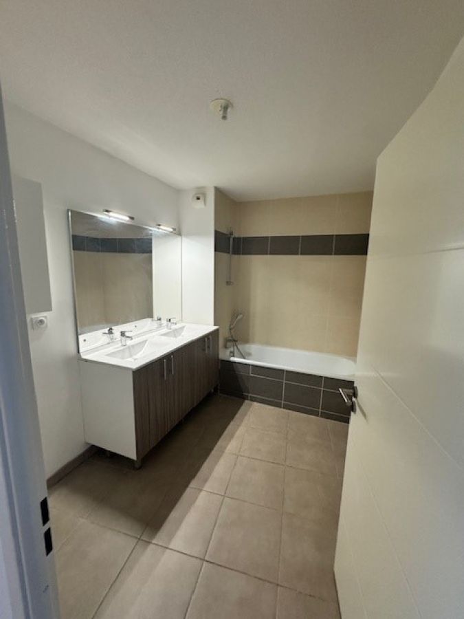 Le logement comprend une entrée, une cuisine ouverte sur le séjour. Elle est équipée de meubles hauts et bas, plaques vitrocéramiques et hotte. La pièce de vie spacieuse et lumineuse, donne sur un agréable balcon de 11 m². Côté nuit nous trouverons, 2 chambres avec placard de rangements dans l’une. Une salle de bain agrémentée de meuble sous vasque double, miroir lumineux, sèche serviette.