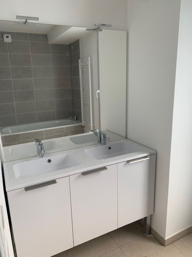 Il se compose d'une entrée avec placard, un espace séjour avec cuisine ouverte équipée, un espace nuit avec 2 chambres avec placard, une salle de bain avec double vasques et WC séparé.