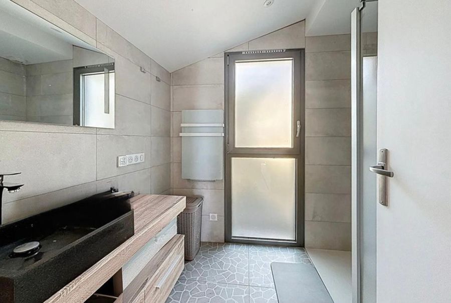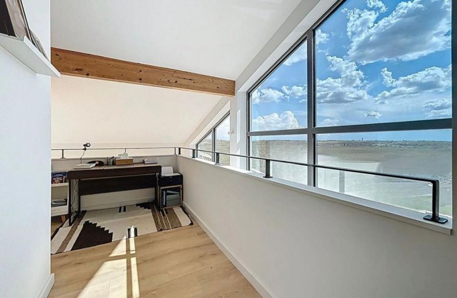 A l’étage deux belles chambres, un espace bureau lumineux et une salle de bain avec douche et baignoire et double vasque.