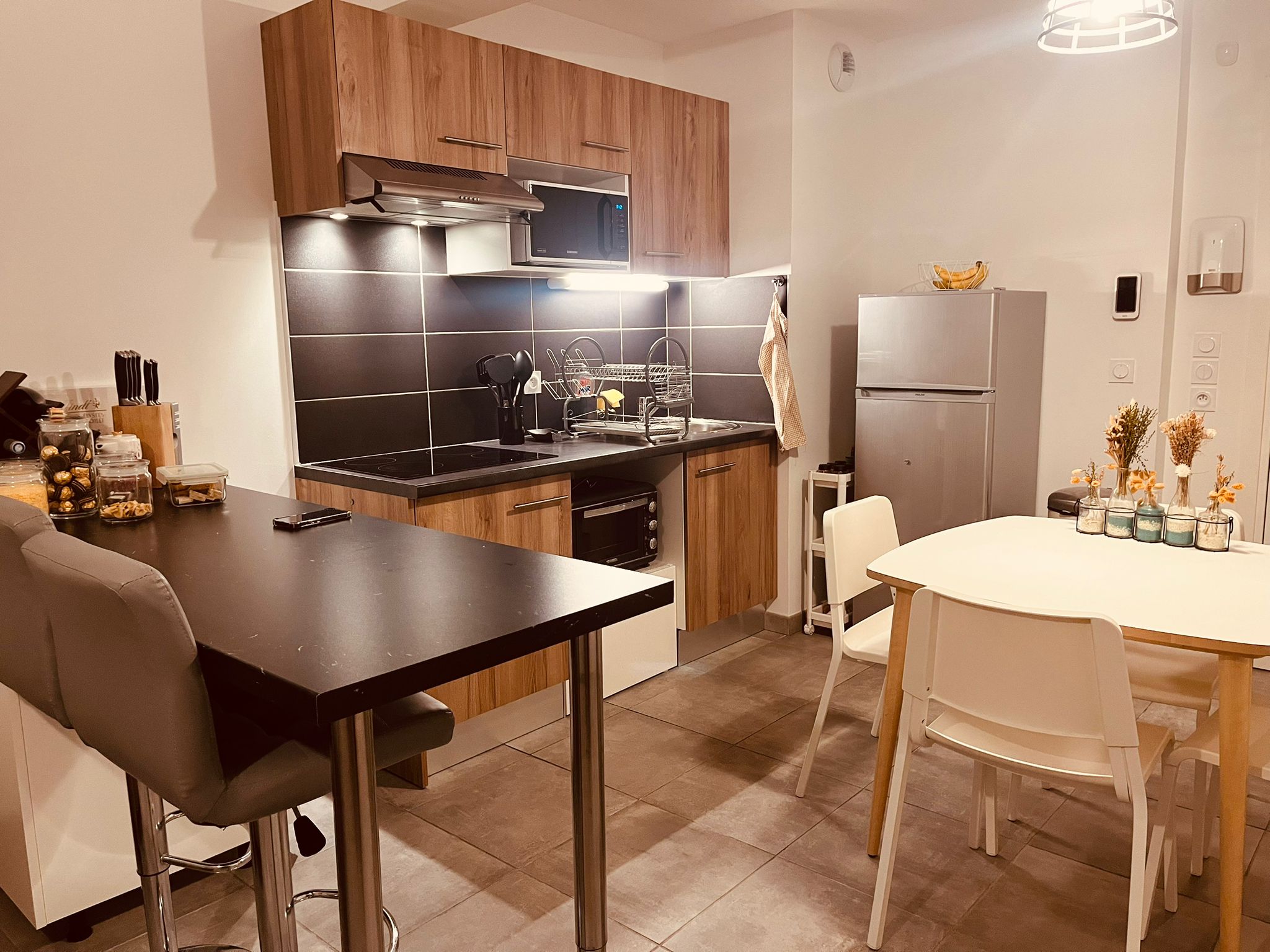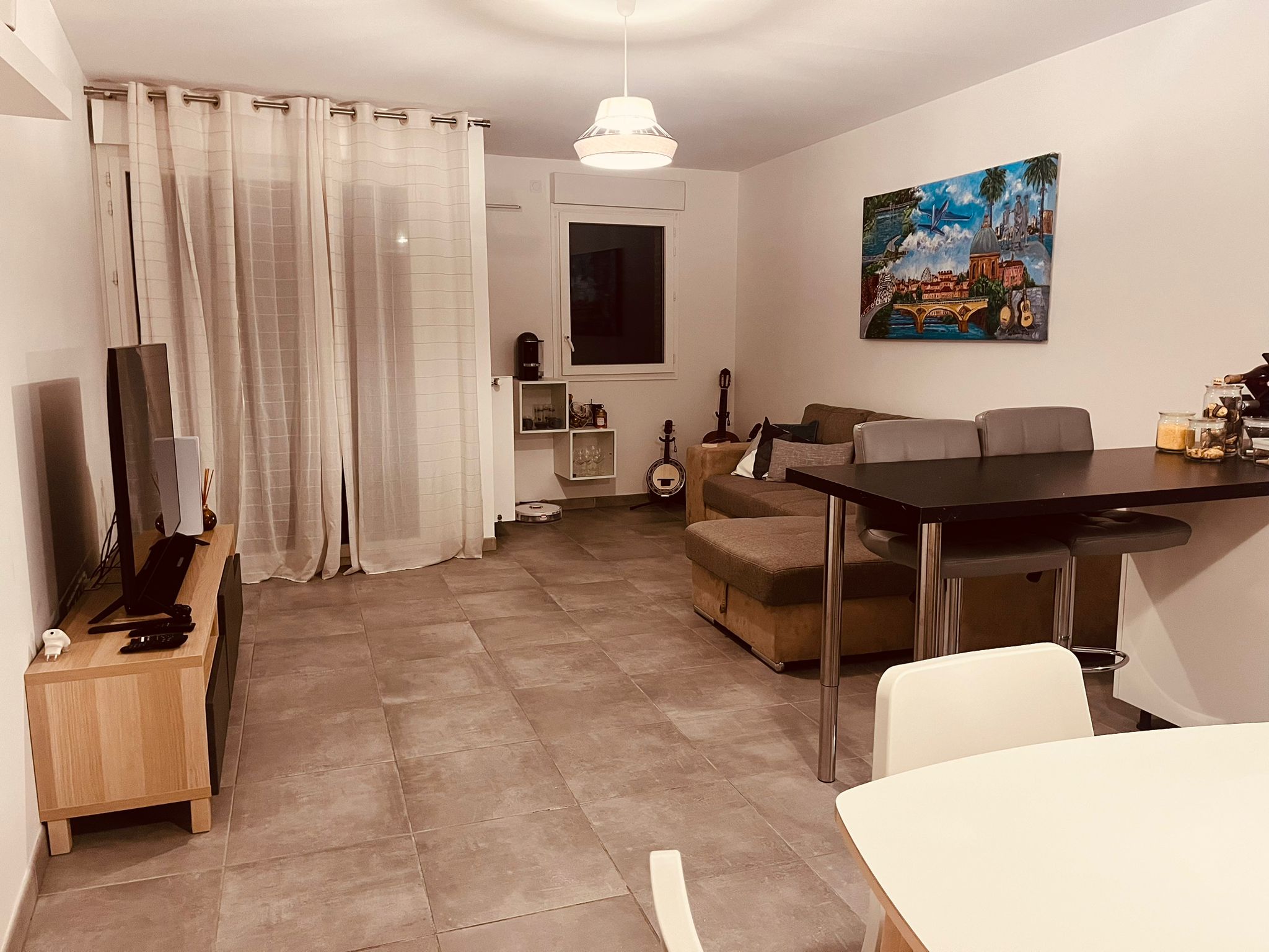Nous vous proposons un appartement T3 récent de 65.37 m² au 4? étage avec un balcon. Le logement se compose d'une cuisine meublée et équipée (plaque vitrocéramique et hotte) ouverte sur le séjour de 27.60 m². La pièce de vie est lumineuse et donne accès à un balcon de 5.55 m². Deux chambres de 11.72 m² et de 9.68 m² avec ensemble penderie, étagère. Une salle de bains agrémentée de meuble sous vasque, miroir lumineux, baignoire, sèche serviette.
